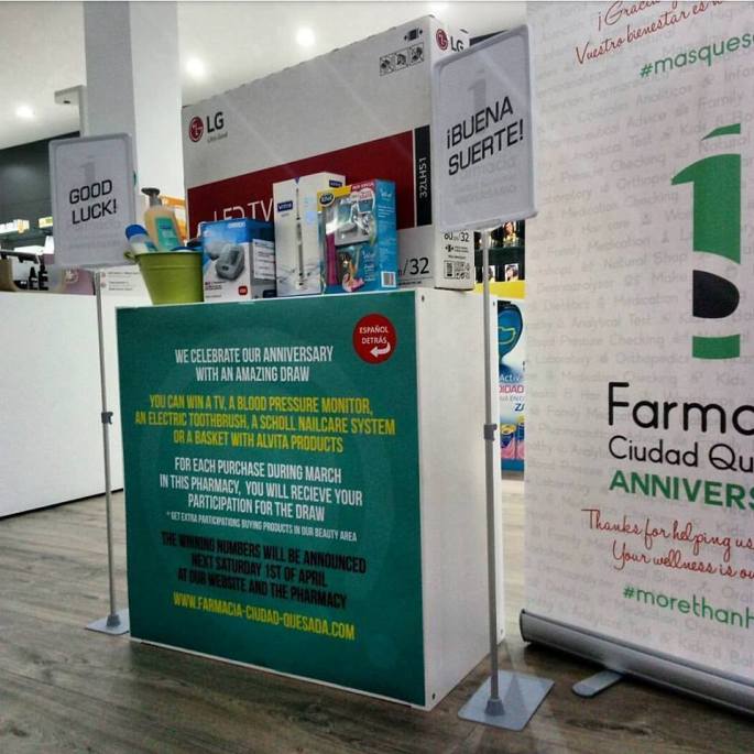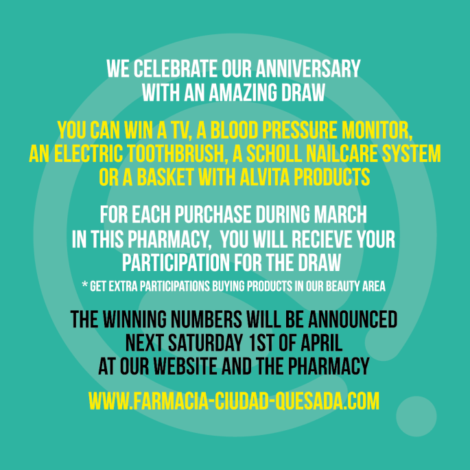 Ăstos son los premios que sorteamos por nuestro aniversario. Participa rellenando tu papeleta y el prĂłximo 1 de Abril descubrirĂĄs si ha habido suerte viniendo a la farmacia o consultando el tablĂłn de noticias de esta web.